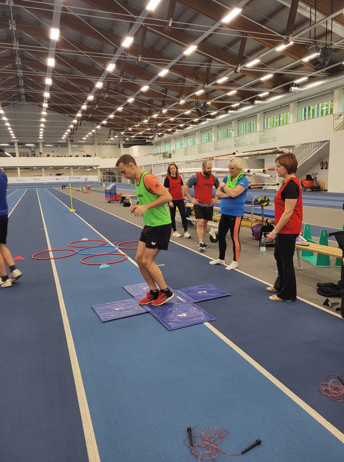 Kergejõustiku töötoas õppisime, kuidas joostes, hüpates ja visates õpetada lastele koostööd, enesejuhtimist ja keskendumist. Seal sai palju häid mõtteid, kuidas kasutada lihtsaid vahendeid: rõngaid, koonuseid, hüppenööri ja tennisepalle. Lihtsate vahenditega saab meeldivalt läbida tüütuna näivaid kergejõustikualasid.